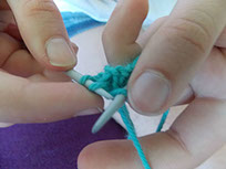 2. Stick in nålen i maskan igen, fast från andra hållet. Nästan som att du gör en aviga maska, fast du har inget garn framför.