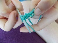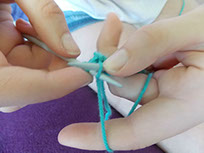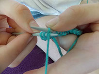 4. Trä över maskan som de två nya maskorna kommer ifrån. Och vips, så har du fler maskor på nålen!