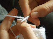 1. Sticka två stycken räta/aviga (beror på hur ditt mönster ser ut) maskor.