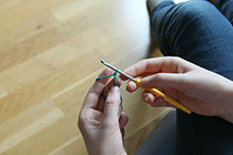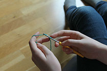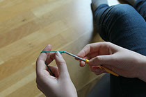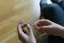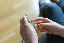 1. Trä garnet runt nålen.