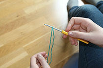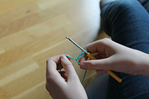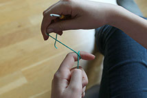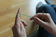 1. Trä garnet runt ditt pekfinger som bilden visar. Håll fast resten av garnet med tumme och pekfinger.