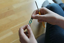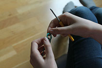 4. Ta nu in garnet som har en avklippt sida och forma den som en ögla.