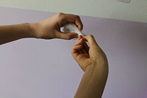 2. Ta tag i den med höger hand och börja vrida den med vänster.